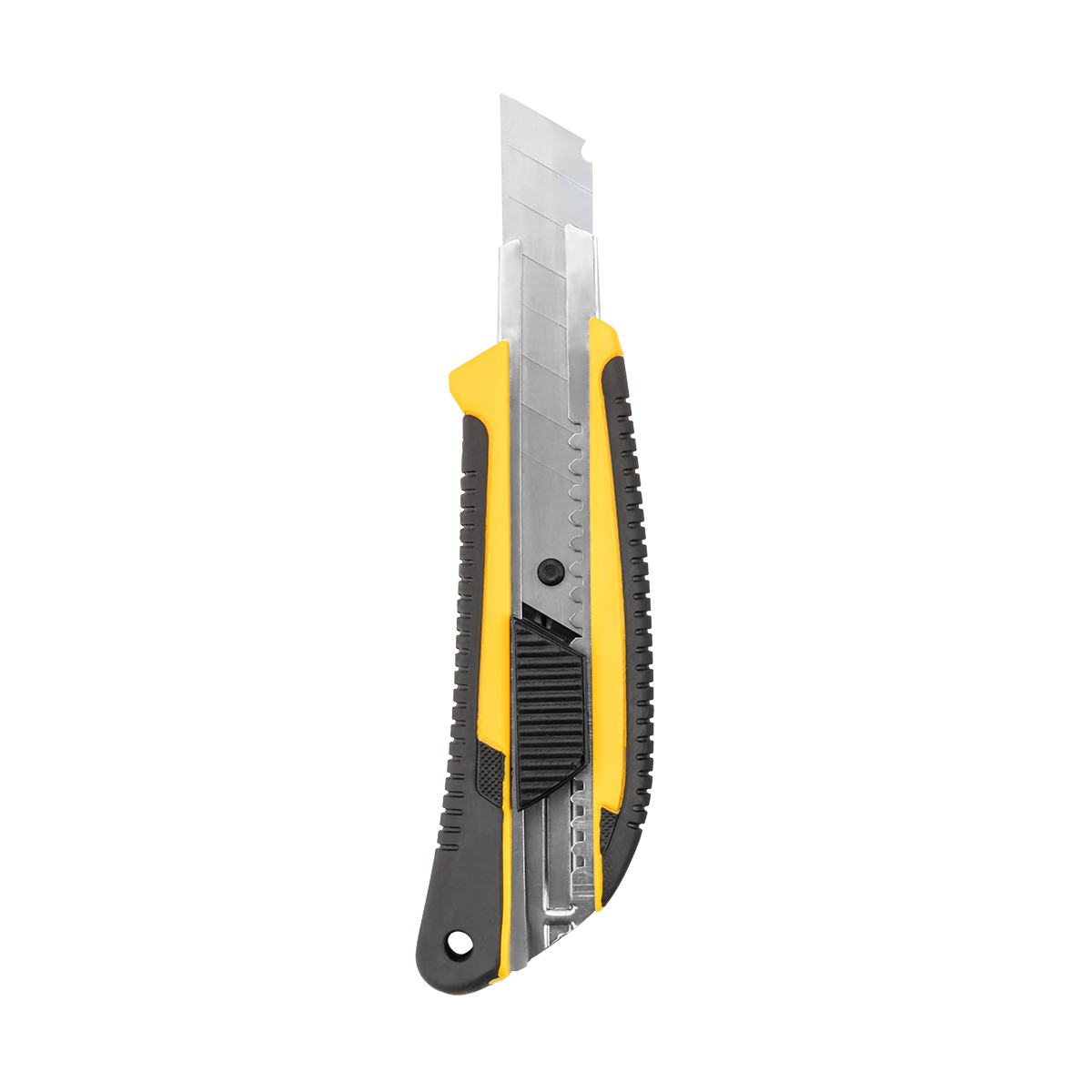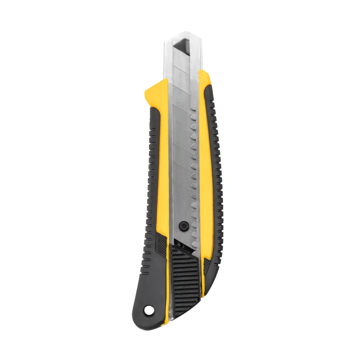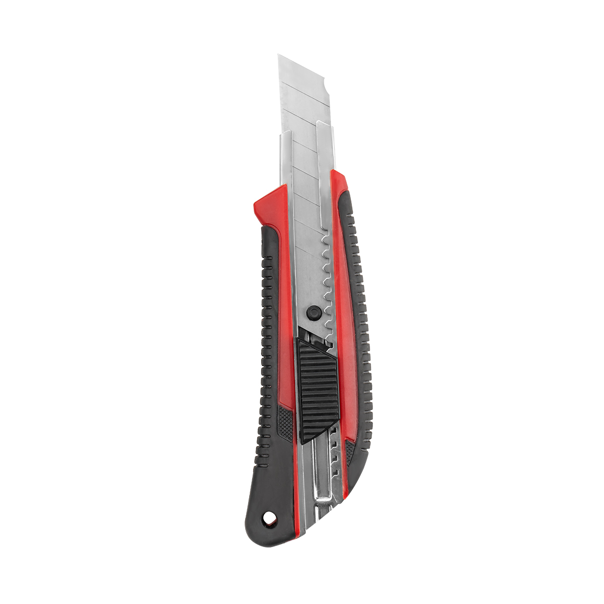 Il coltello da utilità CX-805 ha una maniglia a testura non slip per l'impugnatura migliorata. La lama retrattile d'argento è controllata da un meccanismo di regolazione nera centrale. Con un design minimalista e un alto contrasto di colore, bilancia funzionalità e estetica. Il meccanismo di regolazione posizionato ergonomicamente consente un funzionamento intuitivo e le variazioni rapide della lunghezza della lama per una migliore efficienza.