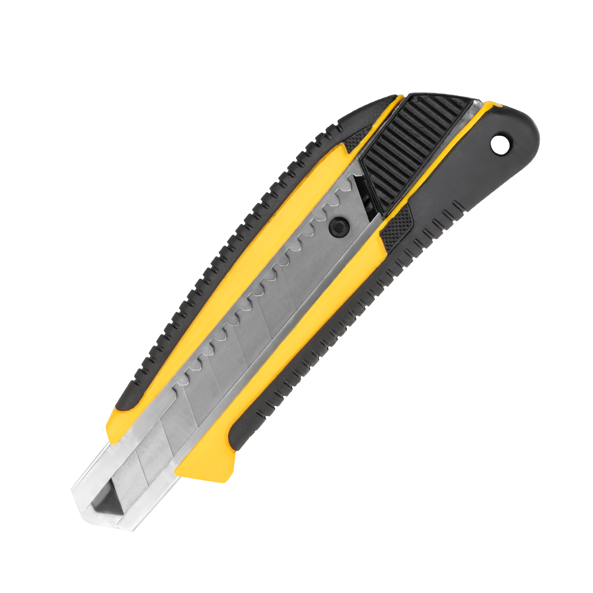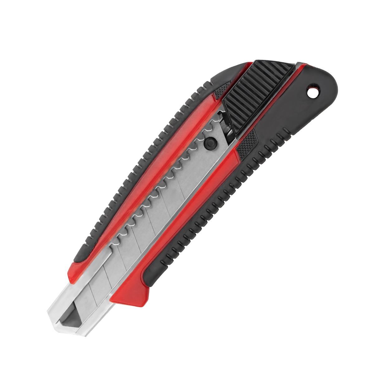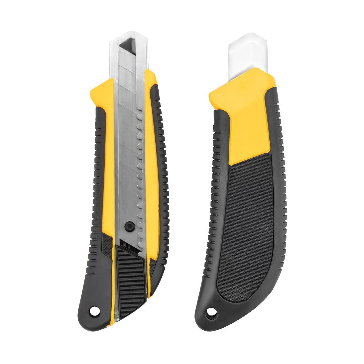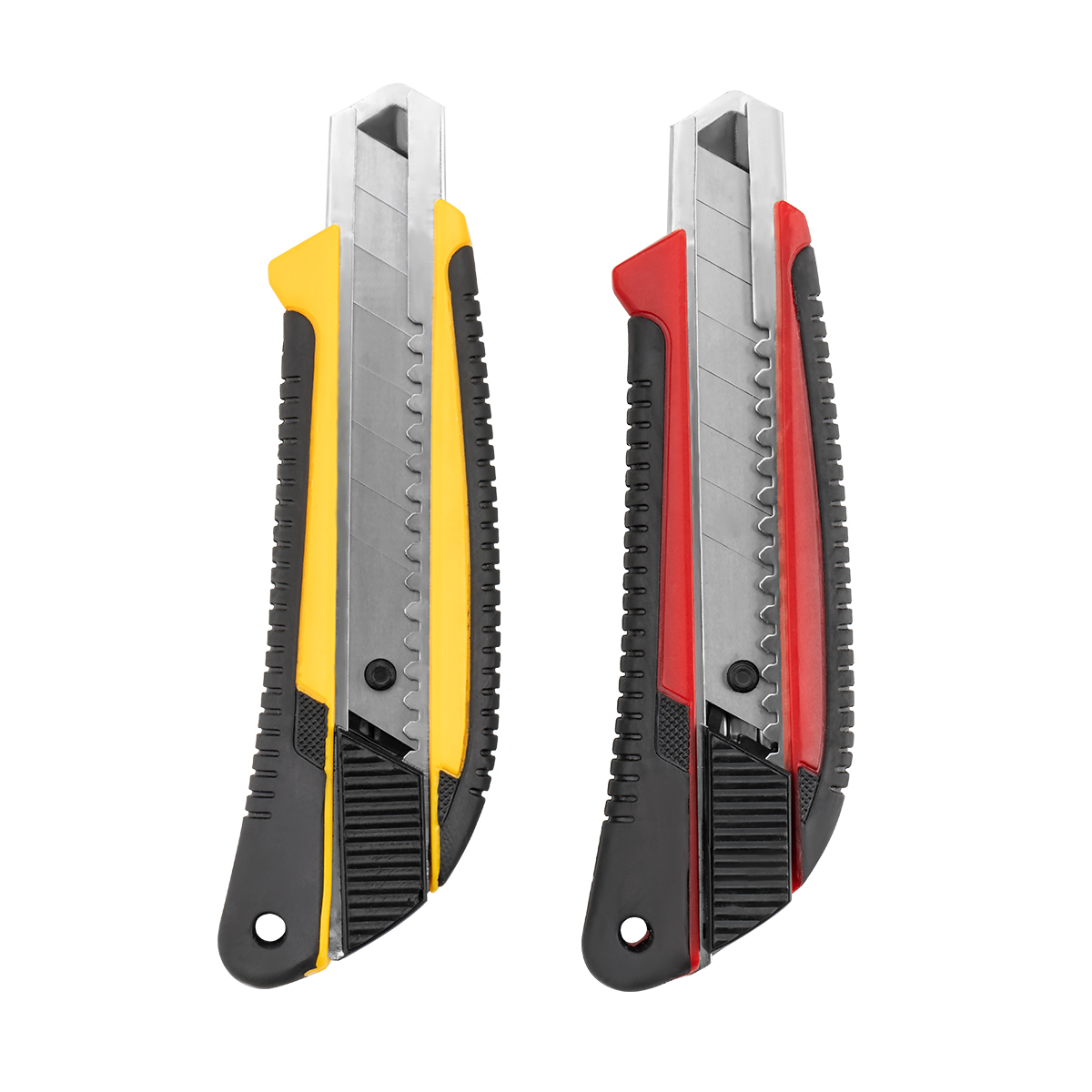 Il coltello da utilità CX-805 ha una maniglia a testura non slip per l'impugnatura migliorata. La lama retrattile d'argento è controllata da un meccanismo di regolazione nera centrale. Con un design minimalista e un alto contrasto di colore, bilancia funzionalità e estetica. Il meccanismo di regolazione posizionato ergonomicamente consente un funzionamento intuitivo e le variazioni rapide della lunghezza della lama per una migliore efficienza.