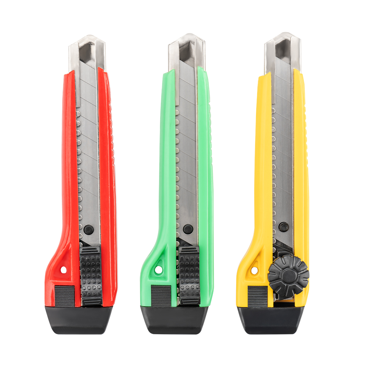 Il coltello da utilità CX-891 offre sia fascino estetico che funzionalità pratica. Il corpo principale della lama, realizzato in plastica, si abbina al colore della maniglia e ha una base nera. La lama d'argento - metallo presenta una struttura trasparente per la chiara visibilità. Con un design minimalista, è realizzato con materiali di alta qualità, garantendo nitidezza e durata. Può tagliare senza sforzo la carta, la plastica, la pelle e altri materiali. La lunghezza di estensione della lama può essere facilmente regolata tramite il cursore o la manopola, soddisfacendo varie esigenze di profondità di taglio.