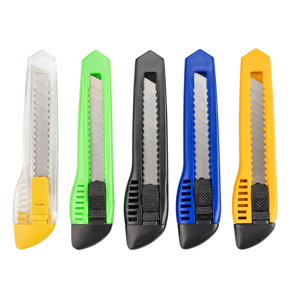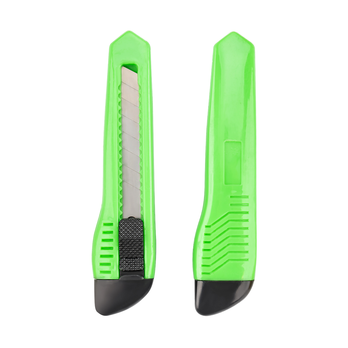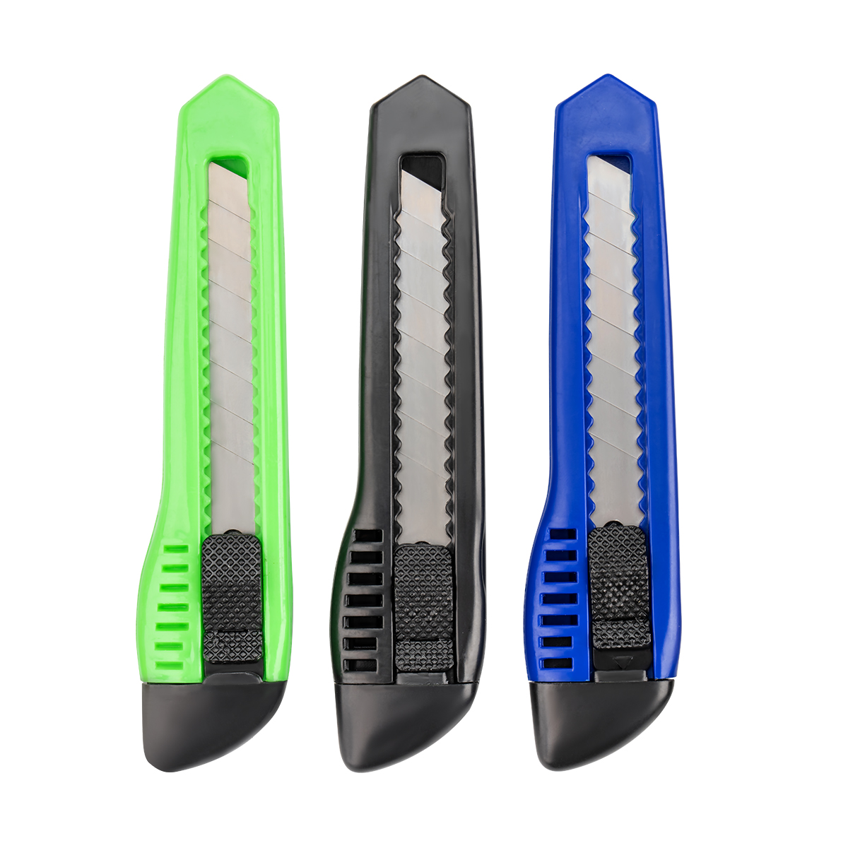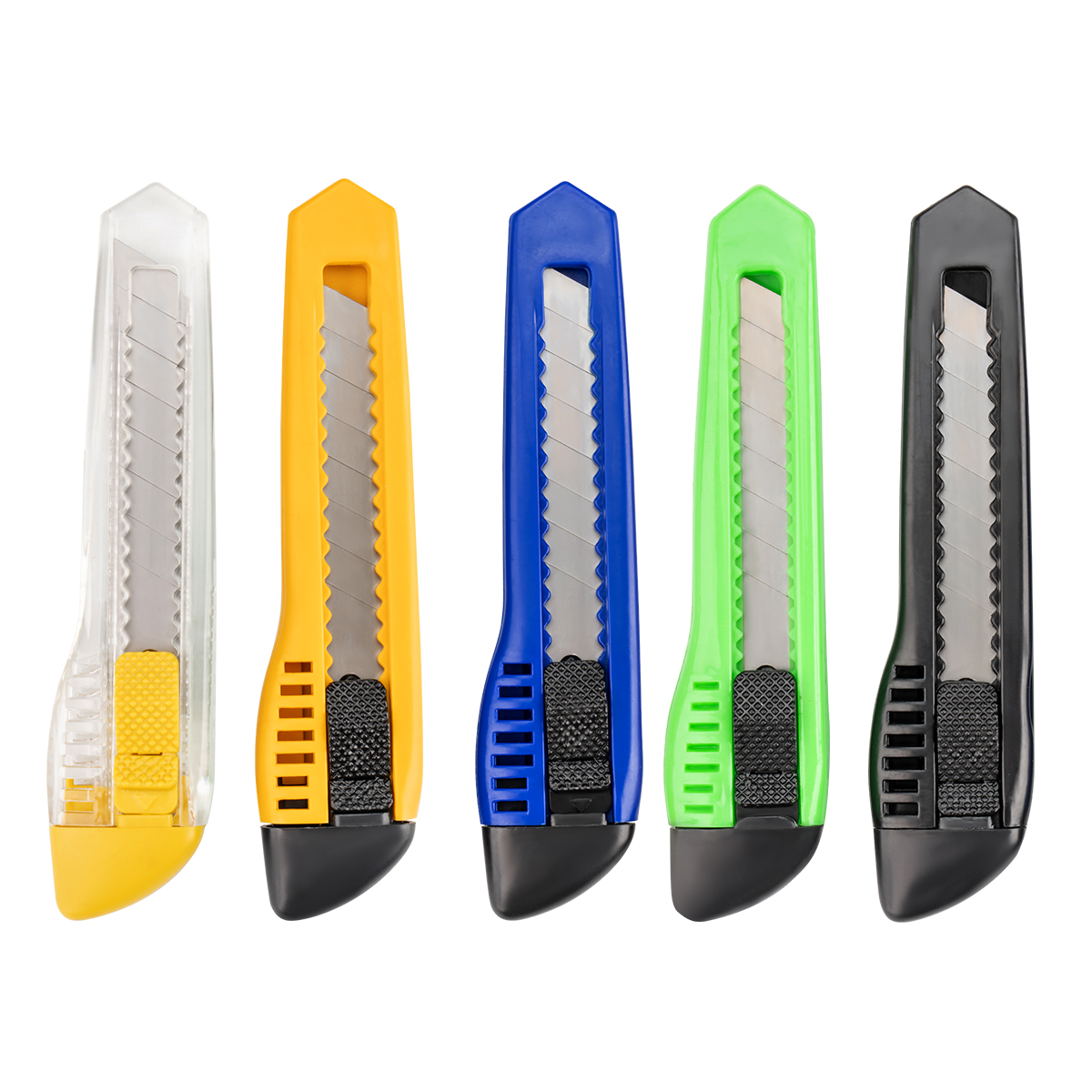 Il coltello da 18 mm CX-802 da 18 mm presenta una lama ultra-affilata ottimizzata per un taglio efficiente. Misurando 18 mm, taglia rapidamente attraverso carta, stoffa, gomma e altri materiali, fornendo tagli puliti e senza bara. La maniglia, realizzata in plastica innovativa, vanta un design ergonomico e snello che si adatta perfettamente alla mano. La sua trama anti-slip fornisce una presa sicura. Il meccanismo di bloccaggio manuale garantisce la sicurezza prevenendo lo spiegamento accidentale della lama. Ideale per designer professionisti, appassionati di artigianato e studenti, questo strumento versatile autorizza la creatività e eleva i progetti.