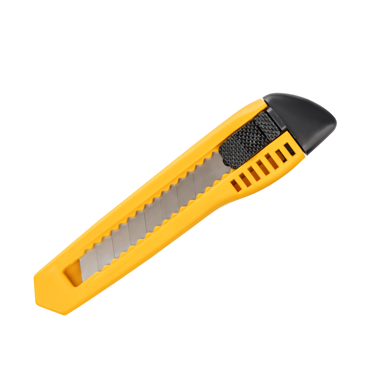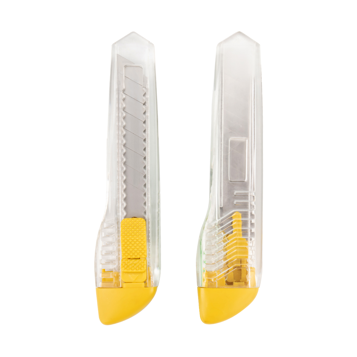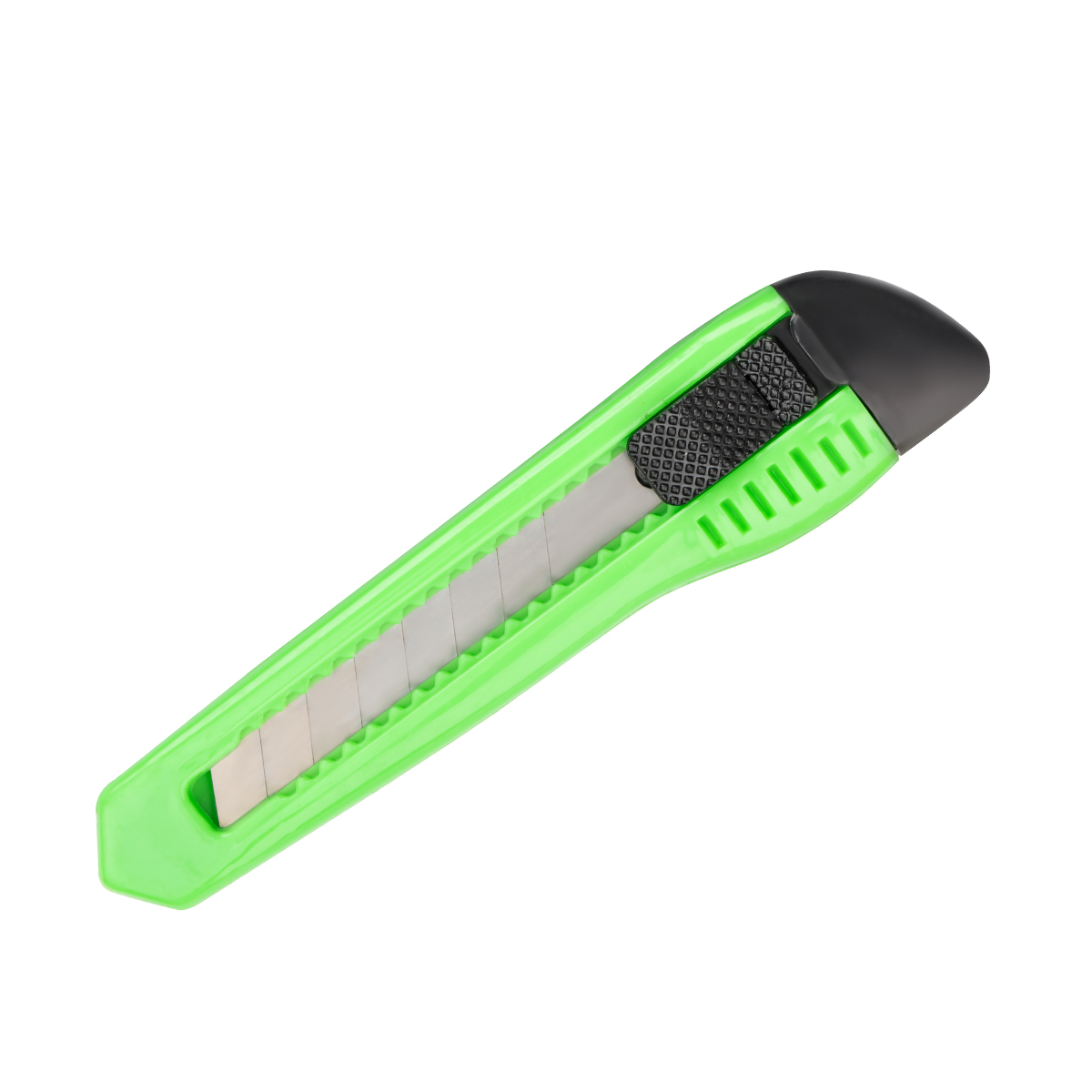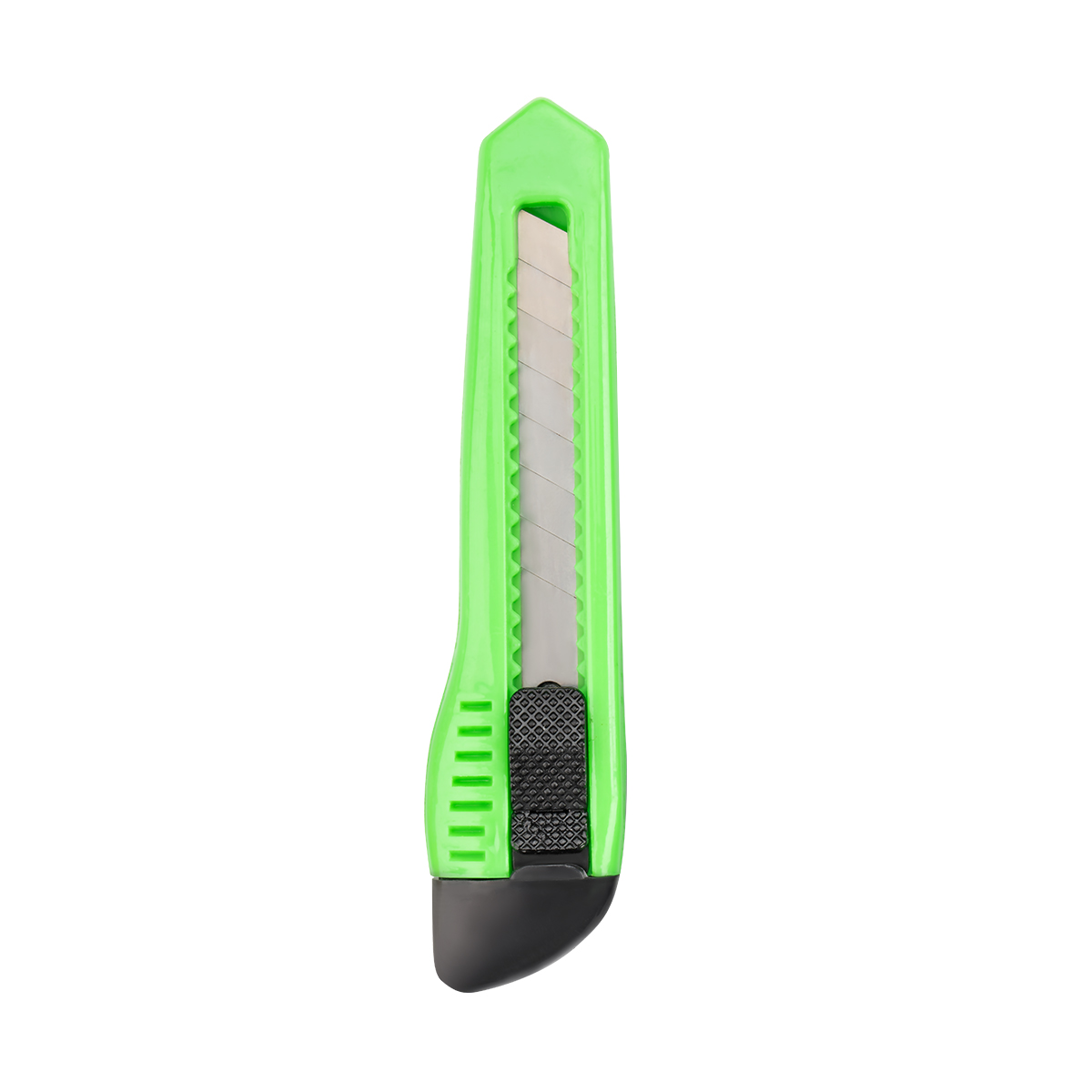 Il coltello da 18 mm CX-802 da 18 mm presenta una lama ultra-affilata ottimizzata per un taglio efficiente. Misurando 18 mm, taglia rapidamente attraverso carta, stoffa, gomma e altri materiali, fornendo tagli puliti e senza bara. La maniglia, realizzata in plastica innovativa, vanta un design ergonomico e snello che si adatta perfettamente alla mano. La sua trama anti-slip fornisce una presa sicura. Il meccanismo di bloccaggio manuale garantisce la sicurezza prevenendo lo spiegamento accidentale della lama. Ideale per designer professionisti, appassionati di artigianato e studenti, questo strumento versatile autorizza la creatività e eleva i progetti.