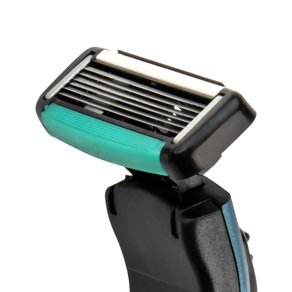 Il rasoio di teste sostituibili da donna CX-T46 presenta a sei lame curve in acciaio inossidabile, affilate e precise, che seguono da vicino i contorni della pelle per una rasatura liscia e priva di graffi, migliorando sia il comfort che la sicurezza. Il suo design della testa a rasatura posteriore aperta consente un facile risciacquo di capelli e detriti residui, promuovendo l'igiene e estendendo la durata della vita del rasoio. La testa di rasatura per pivot raggiunge senza sforzo aree difficili, mentre la morbida impugnatura in gomma non slip garantisce una presa sicura anche sotto la doccia, combinando funzionalità con il design intuitivo.